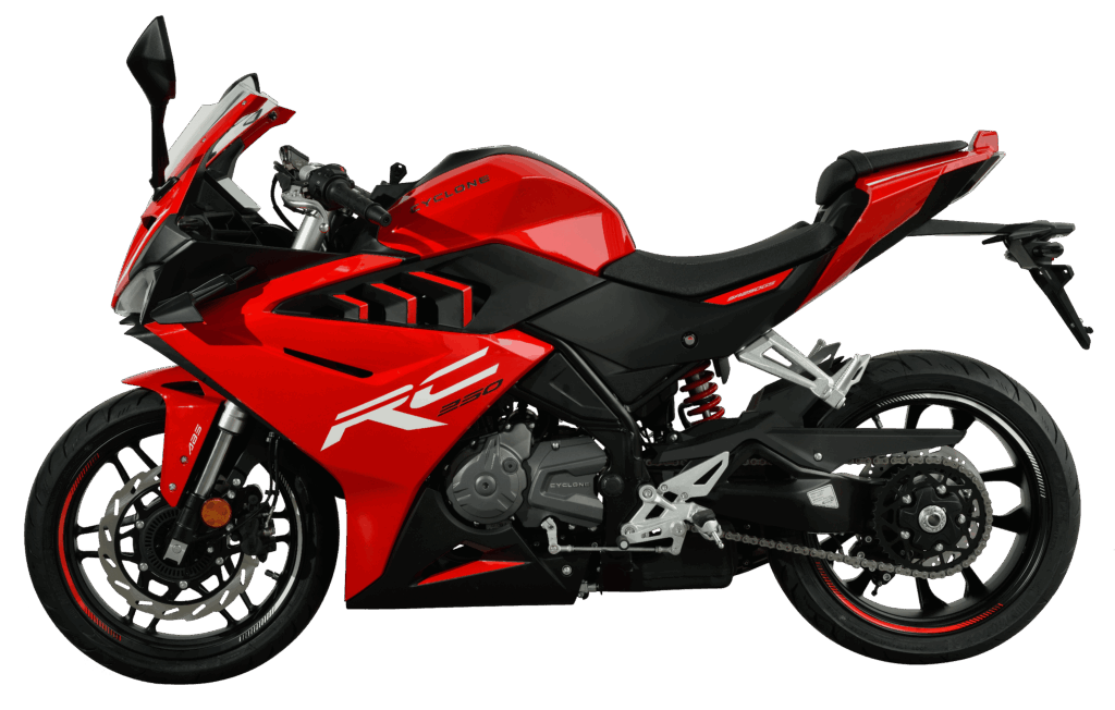 Engineered for the track, refined for the street. The Cyclone RC250 brings professional racing performance to your daily commute with its aggressive aerodynamics and high-revving engine.
